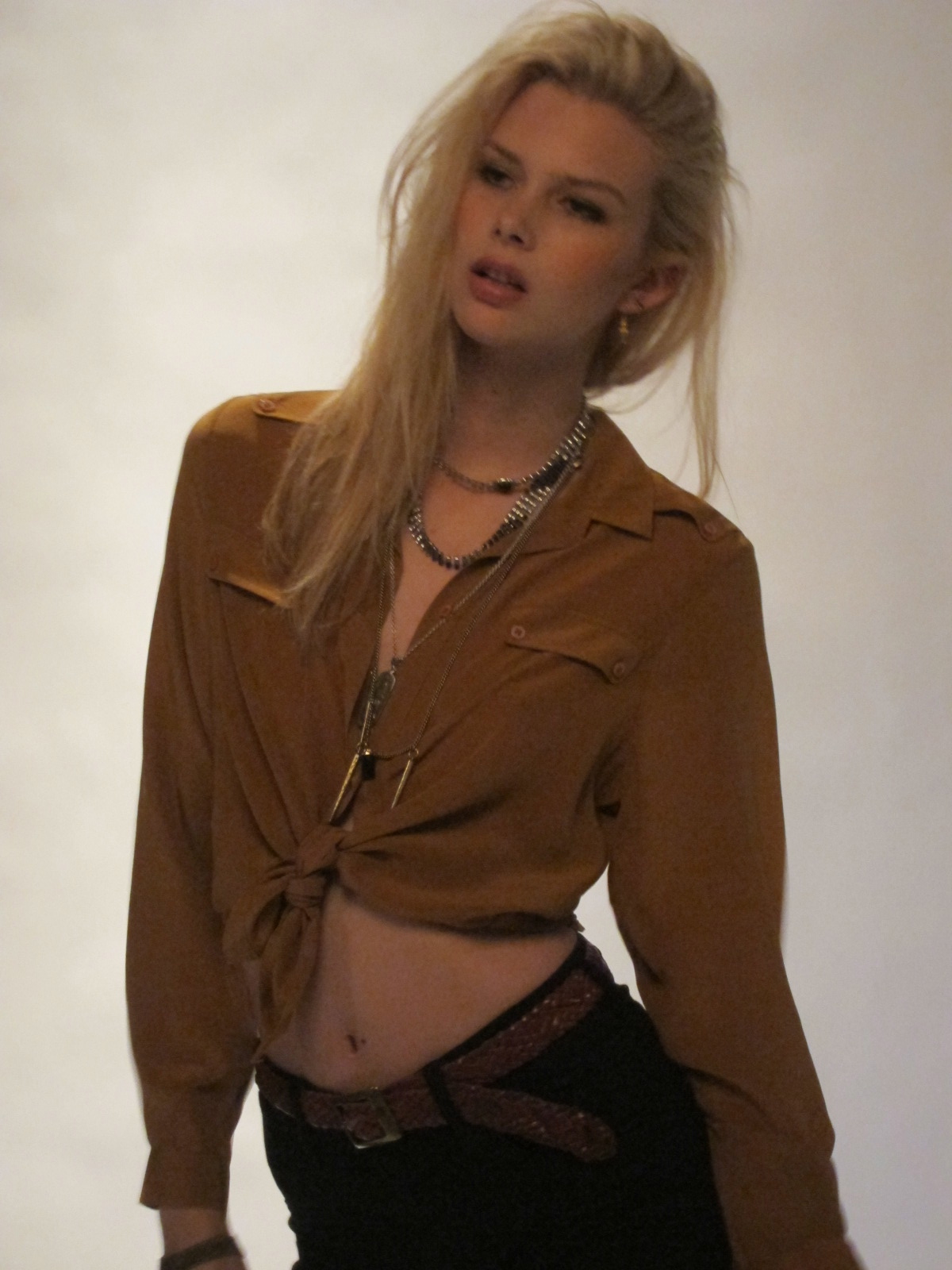 | almost famous: top, topshop. j. brand jeans, model's own. jewelry + accessories, stylist's own. |